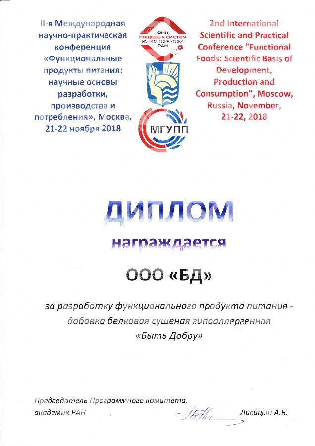 Основа Функционального Питания, основанное на применении Добавки Белковой Сушеной Гипоаллергенной позволяет решить очень многие вопросы, связанные со здоровьем из-за болезней или возрастных изменений, питанием занимающихся спортом или фитнесом, недостатками вегетарианского питания и так далее, так как априори обеспечивает организм всем необходимыми незаменимыми и заменимыми аминокислотами.